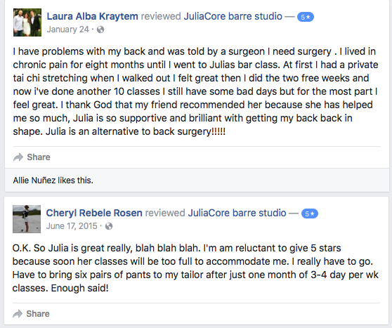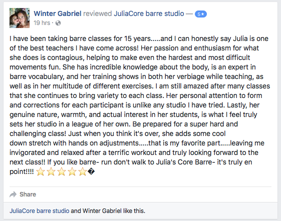 What people are saying about JuliaCore barre studio: